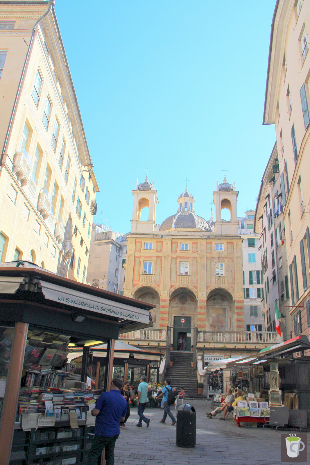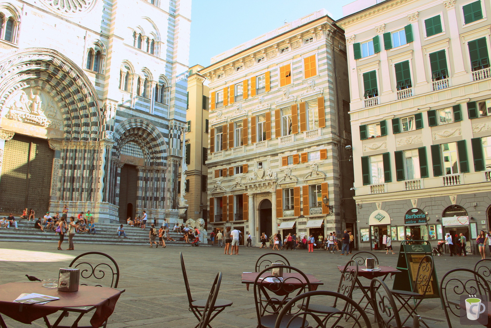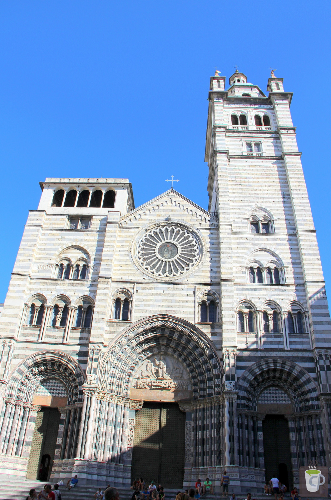 A few streets away from the square, we found the Duomo di Genoa. In front of the cathedral are these cozy coffee shops. From there, we took our first sips of Italian coffee. The Cathedral of Genoa was probably founded in the 5th or 6th century. Later its construction began in the 12th century.